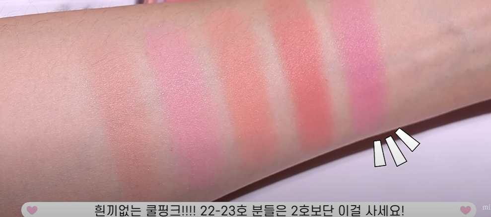 생각보다 보라끼도 잘 돌지 않는다고 하는 흰 끼 없는 쿨핑크입니다. 흰 끼 있으면 채도랑 별개로 떠보이는 피부가 있잖아요. 유영 양이 그런 케이스가 아닐까 싶은데, 2호는 그래서 탈락. 사실 유영 양과 블러셔... 뭔가 딱 하고 안와! 안하는게 더 어울릴지도?! 라고 생각했는데 블러셔를 쓴다면~ 이런 블러셔를 쓰면 좋을 것 같아서 골랐습니다.